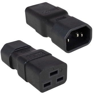 Переходник RUICHI AC-010 IEC-320 C14-C19, 3-х полюсной, 250 В, прямой позволяет использовать кабель питания с разъемом C13 для сервера или профессионального блока распределения питания с подключением C20.
