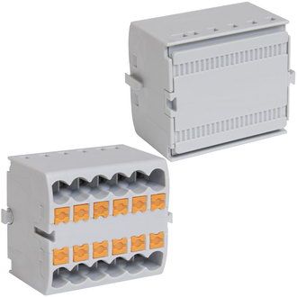 Распределительный блок (зажим блочный) на DIN-рейку RUICHI СМК 226A-6P, на 12 точек, 24 А, 690 В, цвет серый применяется для распределения нагрузки и управляющего тока.